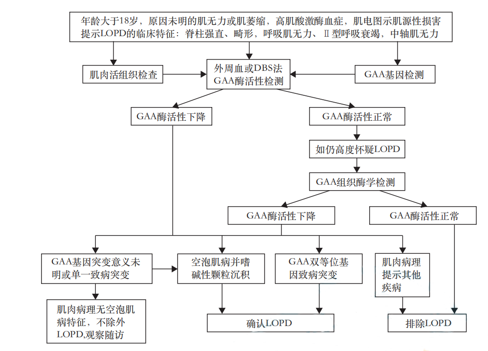 指南共识|成人晚发型糖原累积病Ⅱ型(蓬佩病)诊疗中国专家共识糖原累积病Ⅱ型(glycogen storage disease type Ⅱ,GSD Ⅱ,OMIM 232300),又称蓬佩病/庞贝病(Pompe disease),是由于编码溶酶体内酸性α-葡糖苷酶(acid α-glucosidase,GAA),即酸性麦芽糖酶(acid maltase)的GAA基因缺陷所致的一种罕见的遗传性代谢性肌病。GAA酶活性缺陷导致溶酶体内的糖原不能被有效降解而沉积于骨骼肌、心肌、肝脏等组织器官中,从而引起相应的临床表现。通常根据发病年龄,蓬佩病又可分为婴儿型蓬佩病(infant onset Pompe disease,IOPD)和晚发型蓬佩病(late onset Pompe disease,LOPD)。该病是首个被报道的溶酶体贮积病,也是目前所知唯一属于溶酶体贮积症的糖原累积病 一、成人LOPD的临床表现 成人LOPD患者发病年龄18~70岁不等,多隐袭起病,以运动不耐受和缓慢进展的肢带肌无力和萎缩为主要表现,主要累及躯干肌、四肢近端肌群和呼吸肌,盆带肌多重于肩带肌,患者表现为仰卧起坐、上下楼梯及下蹲后起立困难,跑跳能力差。 推荐意见:表现为不耐受疲劳、进行性肢带肌和中轴肌无力、呼吸肌较早受累、强直脊柱或脊柱畸形的成人患者,要考虑到LOPD的可能。 二、辅助检查 成人LOPD的诊断需要依据肌酶、神经肌肉电生理、肺功能、肌肉活组织检查(活检)、肌肉影像以及酶学和基因检测等进行综合判断。 ![]() ![]() 推荐意见: (1)临床怀疑成人LOPD患者,需行肌酶、针极肌电图、肌肉活检、GAA酶活性检测、GAA基因突变分析及肺功能检测。典型肌肉活检病理改变对蓬佩病的确诊具有重要价值,但肌活检病理未发现特征性改变不能排除LOPD可能。 (2)在中国大陆LOPD中,最为常见的GAA基因突变为c.2238G>C和c.2662G>T。 (3)一些GAA等位基因假性缺陷可造成GAA酶活性降低,但一般不低于30%。皮肤成纤维细胞GAA酶活性检测是“金标准”。 三、成人LOPD的诊断与鉴别诊断 (一)成人LOPD的诊断 GAA酶活性缺陷及GAA基因分析发现双等位基因致病性突变即可确诊蓬佩病。对意义未明的GAA基因复合杂合或纯合突变,则需结合GAA酶活性检测和肌肉活检组织学特征进行综合判断。对于临床、酶学和病理检查均支持LOPD的患者,即使GAA基因检测仅发现单一杂合突变或意义未明的双等位基因变异,仍应考虑LOPD的诊断。 成人晚发型蓬佩病(LOPD)的诊断流程图 ![]() DBS:干血滤纸片;GAA:酸性α葡糖苷酶 (二)成人LOPD的鉴别诊断 成人LOPD患者根据其临床及病理特征主要与以下疾病进行鉴别: ![]() 推荐意见: (1) 成人LOPD 起病隐袭,多表现为缓慢进展的肌无力,近端重于远端,盆带肌重于肩胛带肌,躯干肌和呼吸肌较早受累,较早出现脊柱畸形、肺功能下降或呼吸衰竭。 (2) LOPD实验室诊断依据包括:①肌肉活检显示伴嗜碱性颗粒聚集的空泡肌病;②GAA 酶活性低于正常值的30%;③基因检测GAA基因双等位基因致病性突变,以上3项中具备任意2项证据就可以确诊LOPD。 四、成人LOPD的治疗 成人LOPD是一个多系统受累的遗传性罕见疾病,需要多学科综合管理(multiple disciplinary team,MDT),MDT应贯穿其治疗的全程,涉及到遗传代谢病、神经内科、心内科、呼吸科、内分泌科、骨科、康复科、营养科及精神心理科等专业学科。 ![]() ![]() 推荐意见: (1)目前为止,ERT是唯一证明有效的LOPD治疗方法,且需长期使用,但对于无症状且FVC>80%预测值或已终末期合并严重并发症的LOPD患者暂不建议实施ERT; (2)LOPD患者的治疗需要多学科参与,在ERT治疗的同时,科学的营养、运动和康复锻炼以及呼吸管理等同样重要。 参考文献: 中华医学会神经病学分会, 中华医学会神经病学分会神经肌肉病学组. 成人晚发型糖原累积病Ⅱ型(蓬佩病)诊疗中国专家共识[J]. 中华神经科杂志, 2021, 54(10):7. |