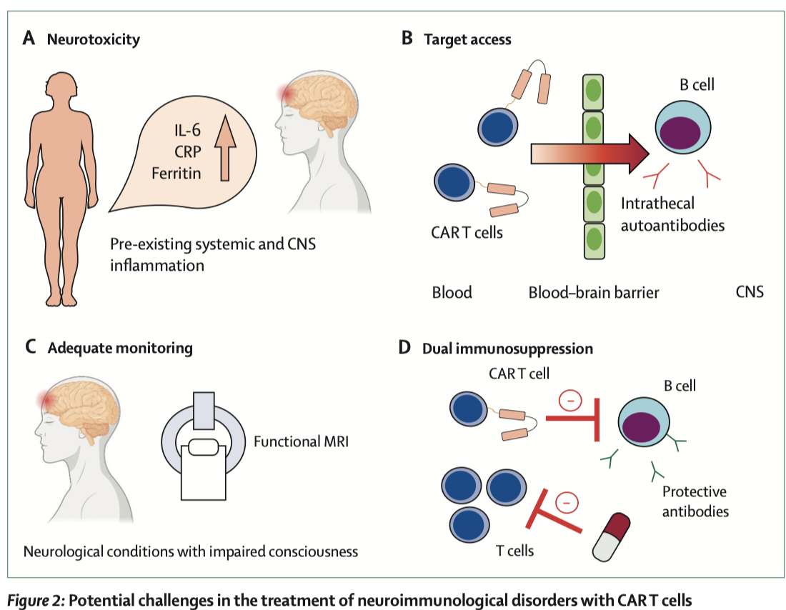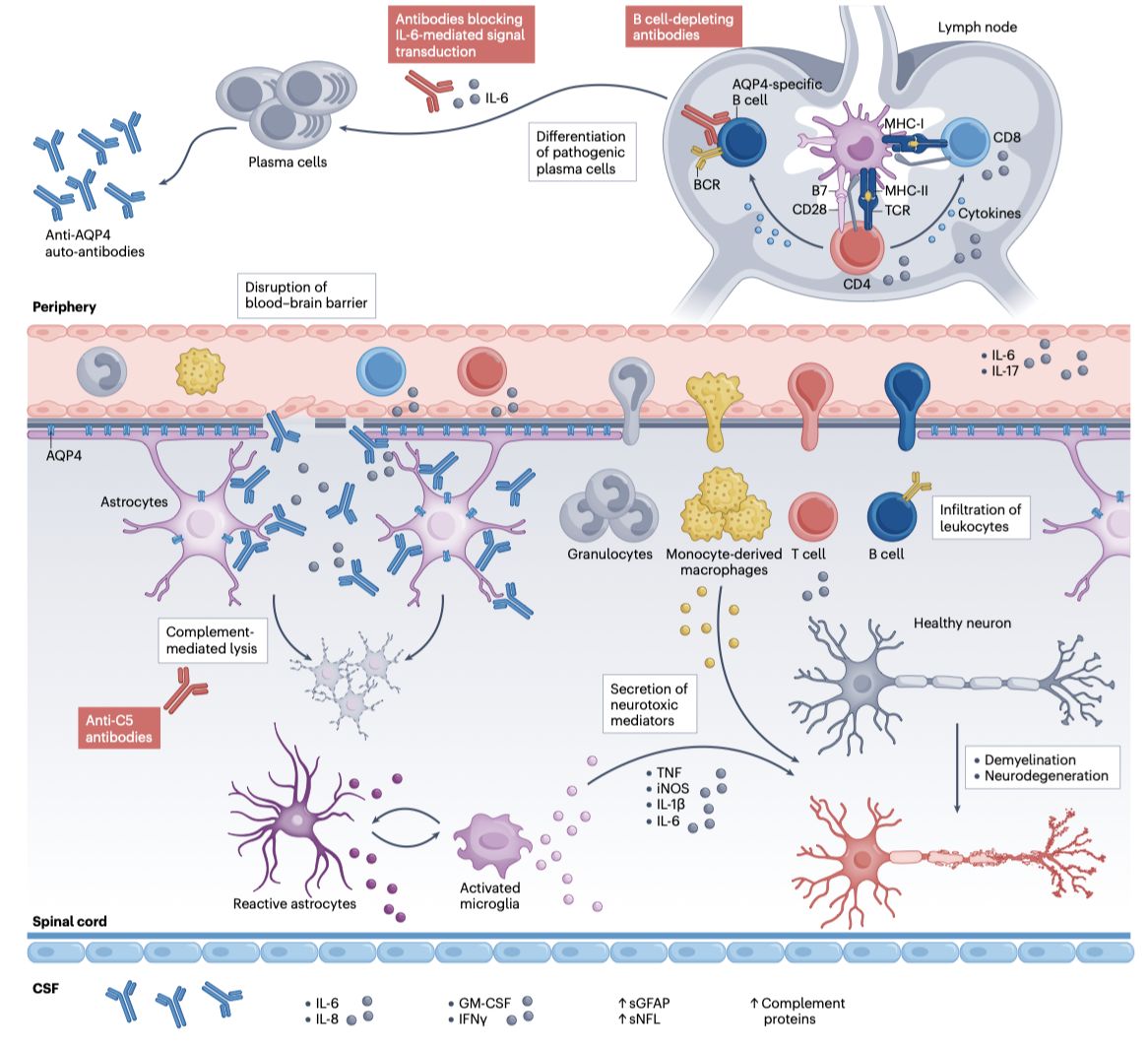 2024 十大研究成果TOP 10 神经免疫基础研究: 细胞因子网络与神经炎症性疾病的关联[1] ——发表于《Nature Reviews. Drug Discovery》(IF 122.7) 这项研究深入探讨了神经炎症性疾病与失调的细胞因子网络之间的因果关系。 在多个临床前模型中证实了神经炎症性疾病与细胞因子失调的紧密联系,并指出细胞因子失调作为癌症免疫疗法的意外效应,常常引发神经炎症。文章重点讨论了“无菌性”神经炎症性疾病的病理生理、细胞因子网络和治疗前景,如多发性硬化症(MS)、视神经脊髓炎谱系障碍(NMOSD)等。 ![]() NMOSD 视神经脊髓炎谱系障碍病理生理学中的细胞因子网络 研究揭示了 NMOSD 发病机制中,CD4+ 和可能的 CD8+ T 细胞特异性抗水通道蛋白 4(AQP4)的诱导机制未知,但 IL-6 等细胞因子可能有利于这些自身反应性 T 细胞的分化,进而促进发病。目前,NMOSD 的三个治疗靶点是 IL-6 受体、B 细胞和补体因子 C5,针对细胞因子及其受体的临床转化虽取得一定成果,但仍需更多研究以解决复杂且矛盾的反应问题。这一研究为理解神经炎症性疾病的发病机制提供了关键线索,也为未来的治疗策略开发奠定了基础。 TOP 9 神经免疫与感染: 长期冠状病毒相关认知障碍患者血脑屏障破坏与持续性全身炎症[2] ——发表于《 nature neuroscience》(IF 21.2)已被引99次 在长期新冠引起认知障碍的个体中,研究发现血脑屏障障碍和持续全身炎症反应是关键特征。 通过动态对比度增强磁共振成像,观察到长期与新冠病毒相关的脑雾患者的血脑屏障中断,外周血单核细胞的转录组分析显示凝血系统失调和适应性免疫反应减弱。 这些发现为理解新冠病毒对大脑的长期影响提供了重要线索,有助于开发针对性的治疗策略,以减轻长期新冠对神经系统的影响。 ![]() 1)长期新冠相关脑雾患者的大脑中存在更多血管渗漏现象的区域包括 • 左右颞叶(TLs) • 左右额叶皮层 2)长期新冠患者的外周血单核细胞(PBMCs)表现出以下具体的异常特征 • 增强的粘附性:长期新冠患者的PBMCs在体外实验中显示出与人脑内皮细胞(如hCMEC/d3细胞系)更强的粘附能力。这种增强的粘附性在存在或不存在TNFα的情况下均有所体现。 • 炎症标志物表达增加:暴露于长期新冠患者血清中的脑内皮细胞表达了更多的炎症标志物,例如TNF和VCAM1。 3)基因表达变化 •恢复期患者:相比于未受影响的个体,恢复期患者的PBMCs中有950个差异表达基因(DEGs)。 • 有脑雾症状的长期新冠患者:这些患者中与维生素A代谢相关的基因(如DGAT2、DHRS9)和调节白细胞稳态的基因(如CXCL10、IL6R)发生了变化。 TOP 8 神经肌肉疾病: 小分子改善重症肌无力的肌肉功能[3, 4] ——发表于《Nature reviews. Drug discovery》(IF 122.7) 最新研究发现,小分子 NMD670 通过抑制氯通道蛋白 1(ClC-1)可提高大鼠重症肌无力(MG)模型中对运动指令的肌肉兴奋性,并改善肌肉功能。 ClC-1 是骨骼肌特异性氯离子通道,调节神经肌肉传导和肌肉纤维的兴奋性。研究识别出 NMD670 这一能够选择性抑制 ClC-1 的化合物,它在 MG 大鼠模型中显著增加了肌肉力量,并在人体试验中耐受性良好,部分患者对单次给药有反应。 ![]() 这一发现不仅为 MG 患者带来了新的治疗希望,还拓展了神经肌肉疾病治疗的潜在药物靶点,NMD670 等 ClC-1 抑制剂还在其他神经肌肉疾病中进行评估,有望为更多患者提供有效的治疗方案。 TOP 7 自身免疫性脑炎: 抗LGI1脑炎患者的神经学、精神病学和睡眠研究:西班牙的前瞻性队列研究 ——发表于《The Lancet. Neurology》[5, 6](IF 46.5) 本次前瞻性队列研究,详细描述了抗 LGI1 脑炎患者在初次免疫治疗后的第一年内,包括睡眠障碍在内的多种临床特征。 视频多导睡眠图显示79%的患者有异常睡眠结构,63%有过度片段性肌阵挛,38%有肌束震颤。 额外免疫治疗后,这些症状得到显著改善,但在第三次访视时,仍有65%的患者存在认知缺陷。 ![]() 研究发现: • 持续的认知缺陷与未使用利妥昔单抗、REM睡眠无肌张力以及血清中存在LGI1抗体相关。 • 大多数抗LGI1脑炎患者在初始免疫治疗后仍存在持续症状,尤其是未被注意到的癫痫发作和睡眠障碍。 • 这些症状影响睡眠质量,进而可能导致认知功能和抑郁行为的恶化。 • 建议对患者进行密切的临床和EEG随访,特别是视频多导睡眠图,以确保及时发现和治疗这些问题。 • 早期使用二线免疫治疗(如利妥昔单抗)可能有助于改善认知结局。 识别这些改变对于改善患者认知结局具有重要意义,为临床医生提供了更全面的评估和监测疾病活动的指标,有助于优化治疗策略,提高患者的生活质量。 TOP 6 周围神经疾病: 吉兰 - 巴雷综合征(GBS) ——发表于《nature reviews disease primers》[7](IF 76.9) 吉兰-巴雷综合征(GBS)是一种罕见的免疫介导的多发性神经根神经病。患者通常会迅速出现进行性肌无力和感觉障碍,严重时可导致完全瘫痪,需要机械通气。有效的治疗方法包括血浆置换和静脉注射免疫球蛋白。然而,约20%的患者在接受治疗后6个月内仍无法行走,约5%的患者因GBS而死亡。GBS的重要知识空白包括其病理发生机制,尤其是在病毒感染后的情况。此外,缺乏特异性生物标志物来改善诊断、监测疾病活动并预测临床过程和结局。未来的主要挑战包括寻找更有效和个性化的治疗方法。 ![]() GBS的全球流行情况 ![]() GBS的病程 吉兰-巴雷综合征(GBS)典型的单相病程,表现为初始急性进展期小于4周,