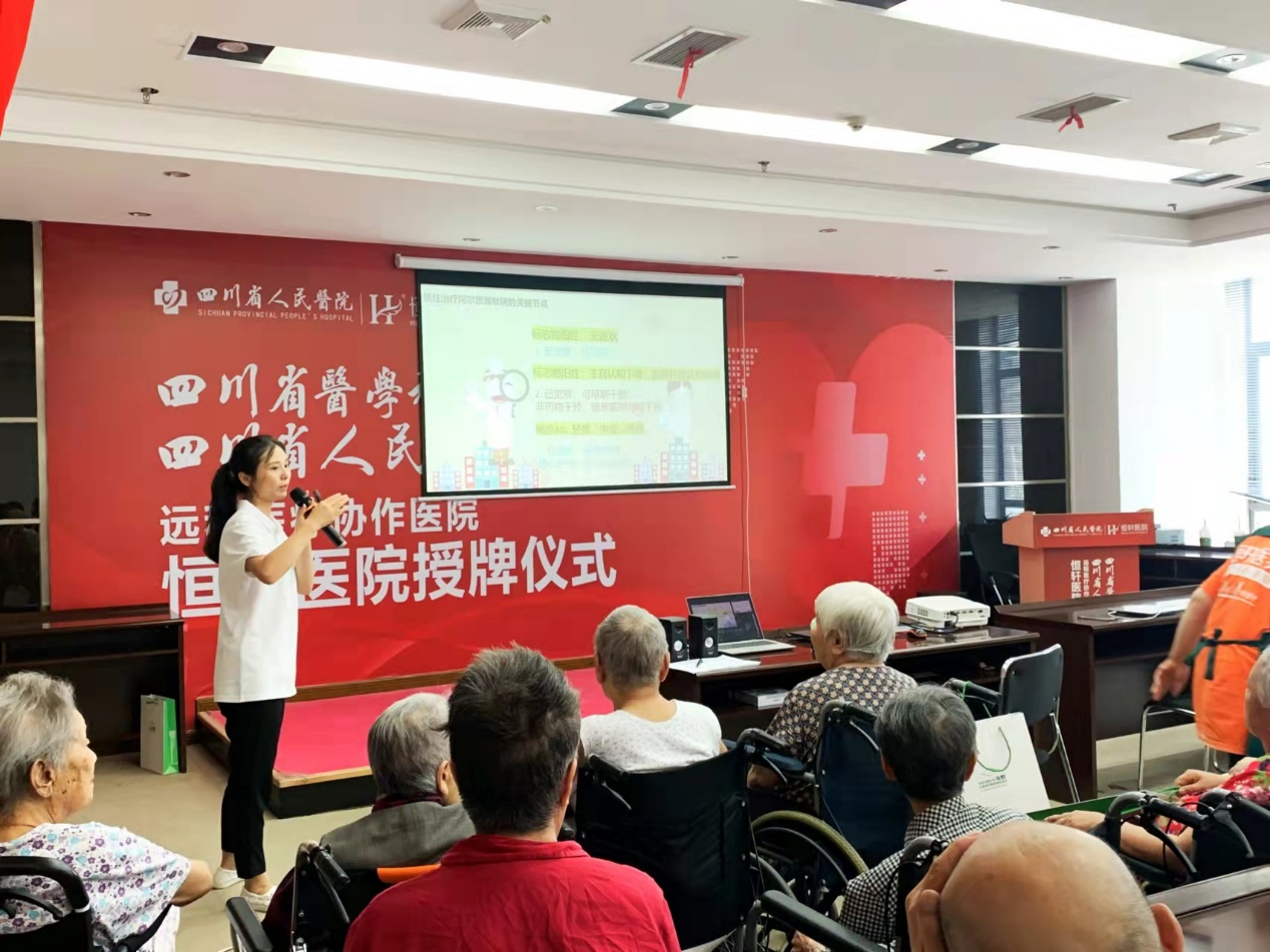 “海默日”公益宣讲圆满结束8月8日,是海默医学成立的日子,我们公司秉持着对社会责任的承诺,联合“成都恒轩养老服务中心(恒轩医院)” 举办了一场暖心的阿尔茨海默病公益宣传活动。 ![]() \ | / ★ ![]() 在这个活动中,我们为每位参与的尊敬的老人带了益智转盘伴手礼,并耐心引导老人们玩益智转盘。不仅为他们带来了欢乐,也启发了他们的思维。 ![]() 宣讲中,我们向老人们详细阐述了阿尔茨海默病早筛、早诊、早治的紧迫性和必要性。通过专业的讲解,我们让大家了解到早期干预对于阿尔茨海默病的治疗至关重要,从而引起了老人们的高度关注。 ![]() 宣讲的最后,我们讲解了阿尔茨海默病相关的预防方法。我们引导大家做手指操益智游戏,与老人们一起感受了互动的乐趣。 ![]() 整个宣传活动在欢声笑语中圆满结束。通过我们的努力,老人们不仅在心身上得到了滋养,也在认知健康方面受益匪浅。我们相信,通过这样的宣传活动,我们将更多的人们引导到关注认知健康,倡导早期筛查和诊断的理念,为阿尔茨海默病防控事业贡献我们微薄的力量。 ![]() 在未来,我们将继续秉持社会责任,在每年的8月8日推出更多有益的公益活动,努力为社会大众传递更多有价值的信息,营造更加温馨关爱的社会氛围。 在此,感谢所有参与者的支持与付出,特别感谢成都恒轩养老服务中心(恒轩医院·)对公益活动的支持,让我们共同为认知健康的宣传贡献一份心意。 |