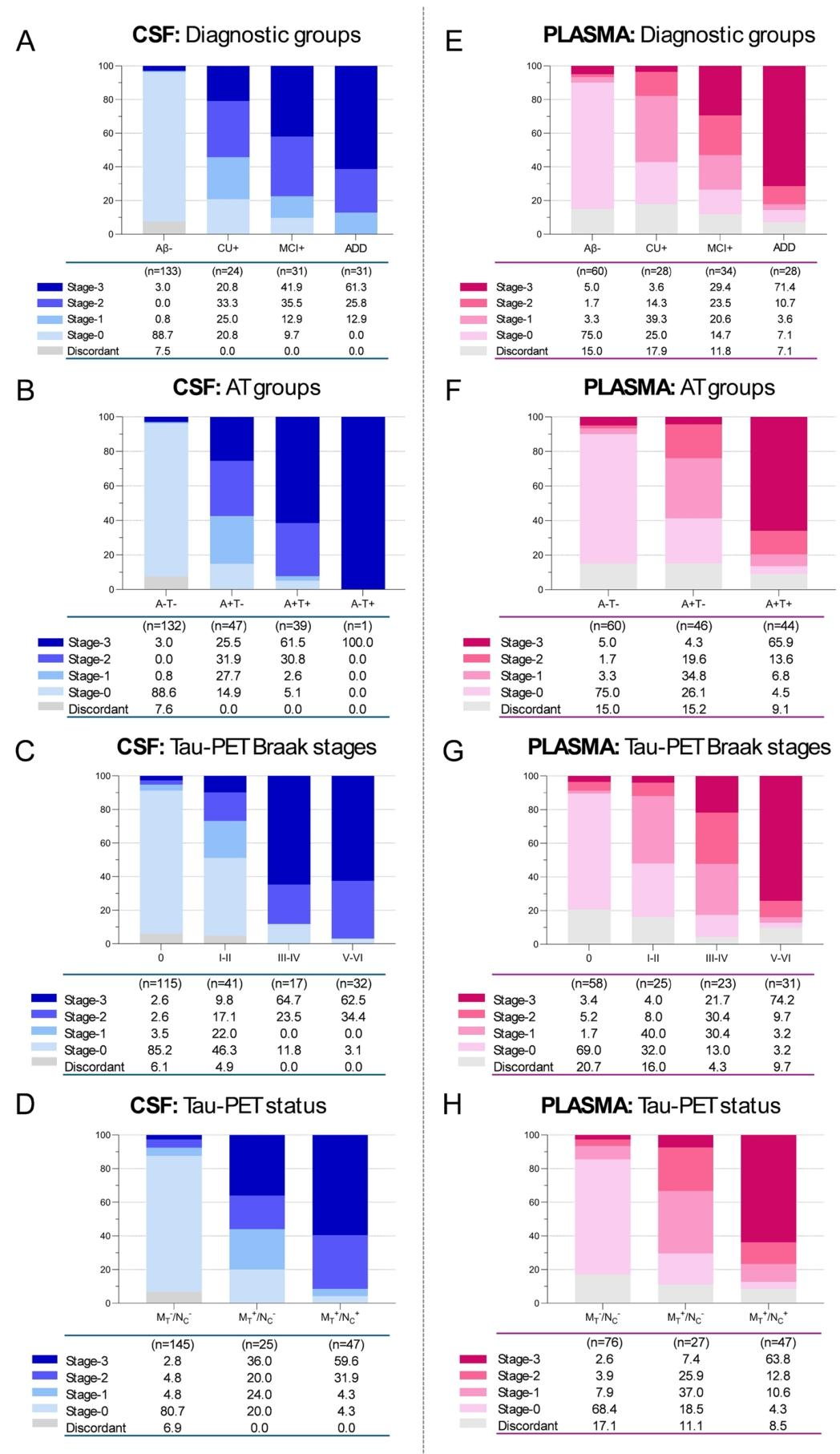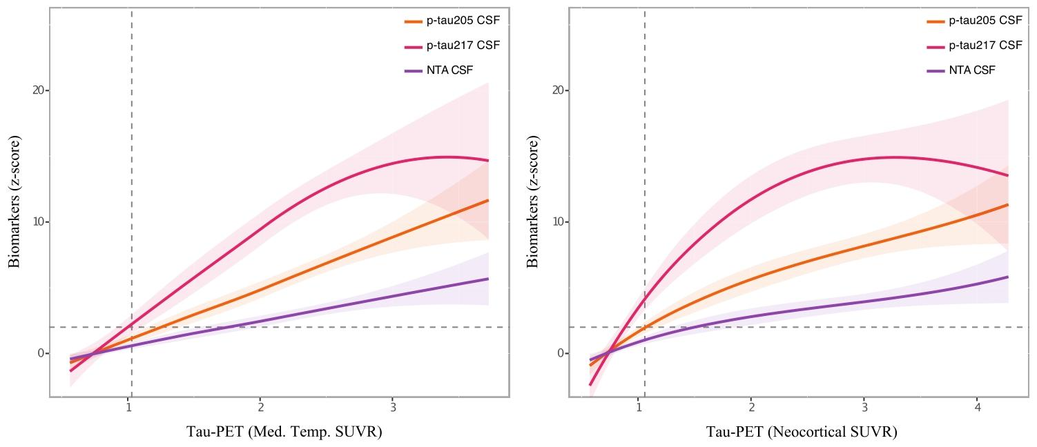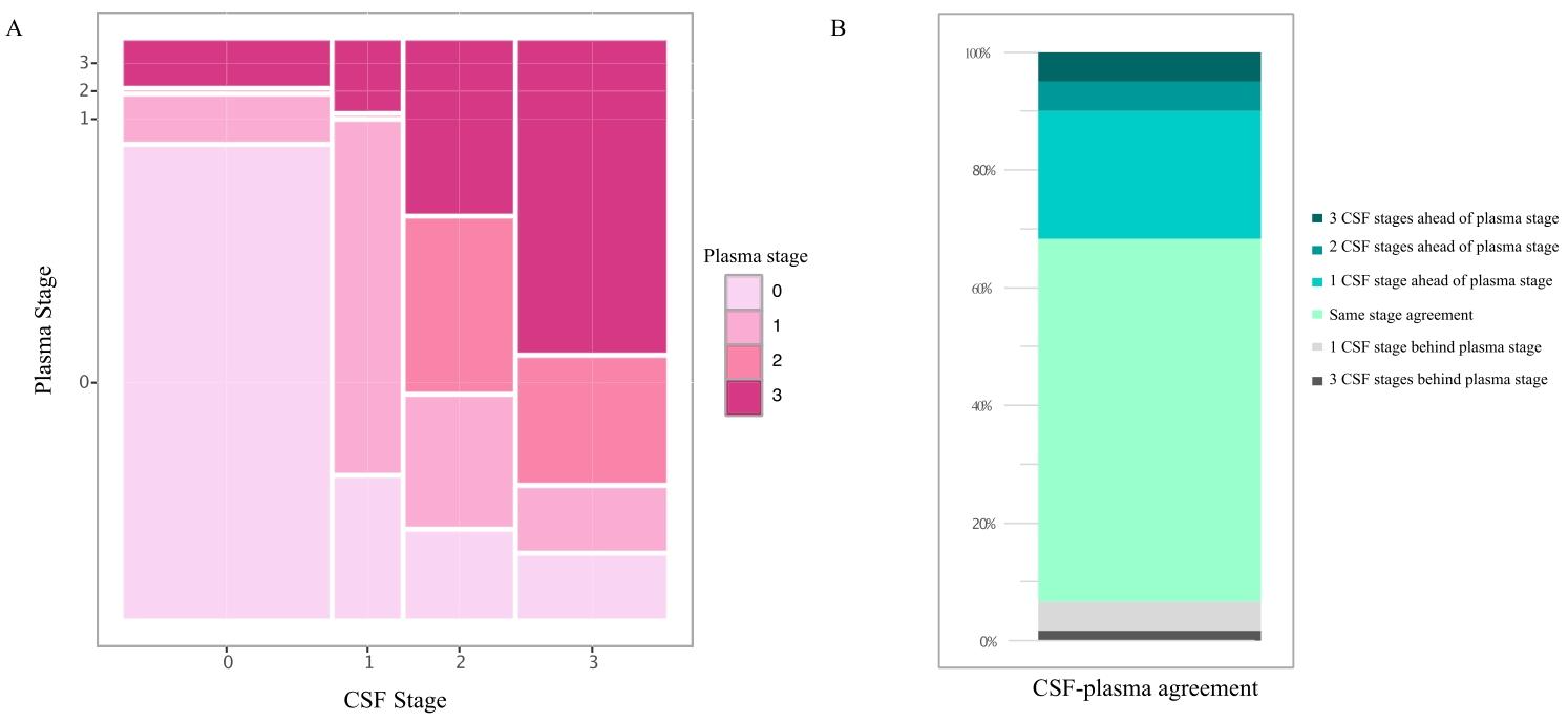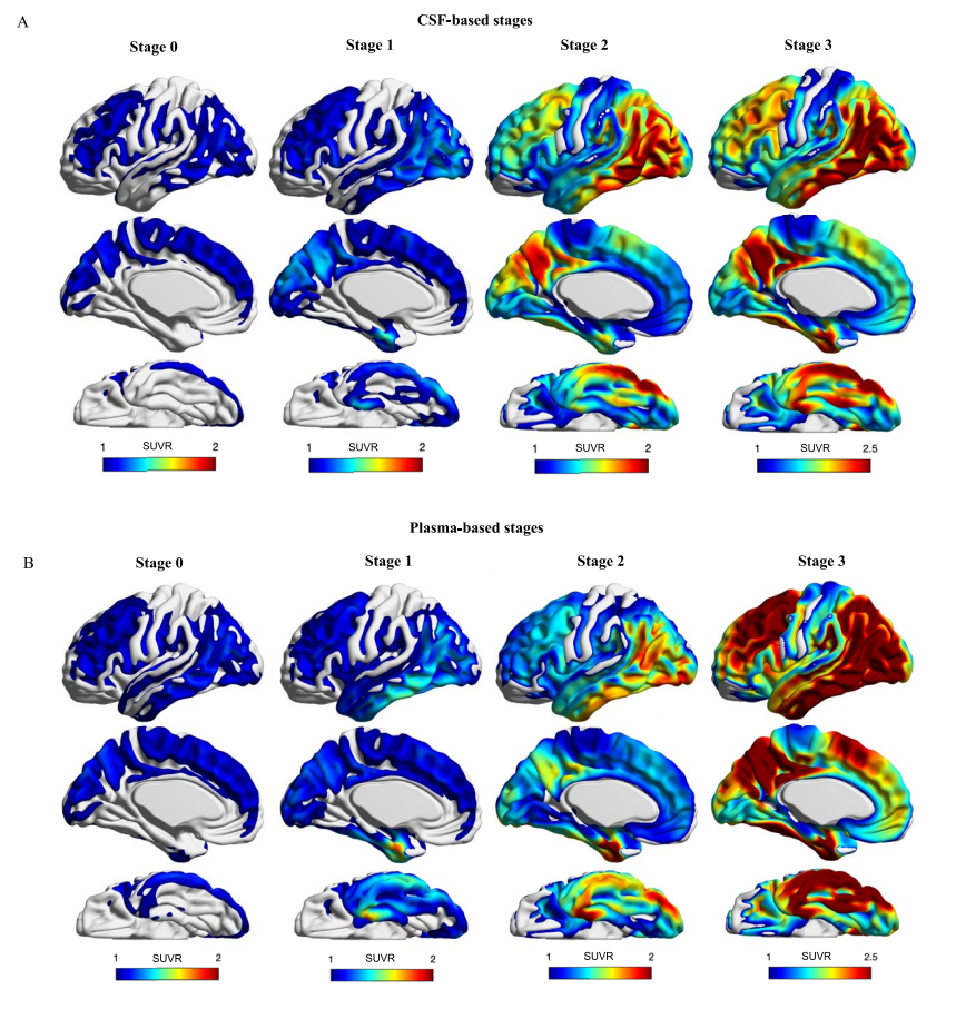 血液生物标志物如何革新阿尔茨海默病诊疗?阿尔茨海默病(AD)的早期诊断与精准分期,始终是医学界面临的重大挑战。近年来,血浆磷酸化tau蛋白(p-tau217)凭借其卓越的诊断性能,成功被纳入AD诊疗指南。2025年4月《AD/PD™ 2025: Advances in Science & Therapy》的会议报道指出血浆标志物有望实现AD的病理分期,推动精准医疗。而最新的两项研究为其临床价值提供了坚实依据,也揭示了这一生物标志物在AD诊疗领域的突破性意义! 一、诊断性能: 精准识别AD,鉴别其他痴呆 中南大学湘雅团队在《Alzheimer's Research & Therapy》发表的研究中[1],首次采用新型单分子免疫检测技术(ASTRA系统),对668名中国汉族人群(涵盖AD患者、轻度认知障碍(aMCI)患者、额颞叶痴呆(FTD)患者、路易体痴呆(DLB)患者、进行性核上性麻痹(PSP)患者及健康对照人群)同步检测了6种血浆标志物:p-tau181、p-tau217、p-tau231、NfL、GFAP和α-突触核蛋白。结果显示,p-tau217的诊断效力显著优于其他标志物(图1)。 1、识别AD患者: AD&aMCI vs HC:p-tau217的曲线下面积(AUC)达0.95,最佳Cut off值为4.2 pg/mL,展现出极高的诊断准确性*。 2、鉴别AD与其他痴呆: AD vs PSP:AUC 0.84(p-tau217最优),临界值为4.5 pg/mL; AD vs FTD:AUC 0.81(p-tau231最优),临界值为10.6 pg/mL; AD vs DLB:AUC 0.83(p-tau181最优),临界值为8.7 pg/mL。 ![]() 图1 使用AUC评估单个血浆生物标志物对aMCI/AD的诊断性能。 *注:具体数据可能会由于收取样本不同而产生差异,如2024年《Alzheimer's Research&Therapy》的一项研究中提到p-tau217指标在区分健康人群与aMCI时,AUC为0.832,Cut off值为3.24pg/mL;在区分健康人群与AD时AUC为0.862,Cut off值为3.09pg/mL,故该数值仅供临床参考[2]。 ![]() 2025年《阿尔茨海默病与痴呆症:阿尔茨海默病协会杂志》明确指出,血浆生物标志物如p-tau217在专业护理环境中可作为关键诊断工具,要求敏感性≥90%和特异性≥75%时用于分流测试(如阴性结果可高效排除AD病理),研究中的AUC 0.95已远超此标准,敏感性≥90%和特异性≥90%时可替代淀粉样PET或CSF作为确认测试。但指南也警示:诊断准确性存在显著变异性,许多市售测试(尤其使用单一切割点时)未达此阈值,因此需结合专业评估以避免误诊[3]。 二、p-tau217与AD病理高度关联 p-tau217不仅是一种诊断工具,更能反映AD的核心病理变化: 1、与脑脊液(CSF)淀粉样蛋白病理相关:血浆p-tau217水平与CSF中Aβ42/40比值呈显著负相关(r=-0.195, p=0.005),提示其可间接反映脑内淀粉样蛋白沉积情况(图2左)。 2、与脑结构损伤关联紧密:研究发现,p-tau217水平与颞叶灰质萎缩显著相关,进一步验证了其与AD神经退行性改变的密切联系(图2右)。 ![]() ![]() 图2 p-tau217与CSFAβ42/40之间的关系(左);p-tau217与灰质萎缩之间的关联(右)。 三、不止诊断,更能为AD“分期” 2025年《Acta Neuropathologica》期刊提出的生物标志物分期系统,为AD的动态进展评估提供了新范式[4]。该系统通过分析219例CSF样本和150例血浆样本,首次建立了AD病理进展模型,明确p-tau217、p-tau205和NTA-tau分别作为早期、中期和晚期AD病理学的生物标志物,并据此将疾病划分为4个阶段(图3): ![]() 0期:p-tau217、p-tau205和NTA-tau均正常,无明显病理改变; 1期:仅p-tau217异常,提示早期tau病理启动; 2期:p-tau217与p-tau205均异常,tau聚集范围扩大; 3期:p-tau217、p-tau205和NTA-tau均异常,神经纤维缠结广泛形成,病情进入晚期。 ![]() 图3 TRIAD研究队列中,通过局部加权回归方法对(A)内侧颞叶和(B)新皮质的tau-PET SUVR进行了CSF tau生物标志物轨迹分析。使用tau-PET SUVR作为阿尔茨海默病病理进展的指标,将CSF生物标志物水平的变化表示为Z分数。异常生物标志物水平被定义为均值之上两个标准差(SD)。 1、生物标志物与tau-PET影像的同步性: 无论CSF还是血浆分期,生物标志物均与tau-PET所示的内侧颞叶及新皮质tau沉积高度吻合。其中,CSF分期在反映中期病理时更敏感,进一步印证了其临床价值(图4)。 ![]() 图4 基于(A)CSF分期和(B)血浆分期的全脑平均tau-PET摄取情况。 2、分期结果对比: (1)血浆分期结果:Aβ阴性人群中,80.5%处于0期;AD患者中,71.4%处于3期。其与tau-PET的关联趋势与CSF一致,但2-3期在Braak高级阶段中的占比低于CSF,不一致率为13.3%(图5)。 ![]() 图5 非配对CSF和血浆样本中基于生物流体的临床相关分层分期。堆积条形图表示流体分期为0期、1期、2期和3期参与者的百分比。蓝色部分为CSF分期,按(A)诊断分组、(B)AT分组、(C)tau-PET定义的Braak分期和(D)tau-PET状态划分。粉色部分为血浆分期,按(E)诊断分组、(F)AT分组、(G)tau-PET定义的Braak分期和(H)tau-PET状态划分。不符合生物流体分期标准的病例以灰色显示。表格显示了每组个体的百分比和总数。 (2)CSF与血浆分期一致性:在76例配对样本中,CSF分期平均比血浆提前1-3个阶段(图6),证实CSF能更早捕捉AD病理信号,而血浆检测因微创性更适合大规模筛查。 ![]() 图6 在匹配数据集的情况下,基于CSF和血浆的阶段之间的一致性,以绿色调表示CSF和血浆阶段之间的一致性。镶嵌图显示:(A)灰色调的比例表示在每个基于生物流体的阶段对个体进行分类时,这些基于生物流体的阶段之间的不一致性。堆积条形图(B)显示了血浆相对于CSF分类处于更“晚期”的个体比例,其中不同灰度表示CSF不同分类水平的个体比例。 四、AD早筛、早诊、早治的意义: 正如首都医科大学宣武医院神经内科韩璎教授所呼吁的:“正确识别主观认知下降阶段的症状,就有可能阻断AD病程,将