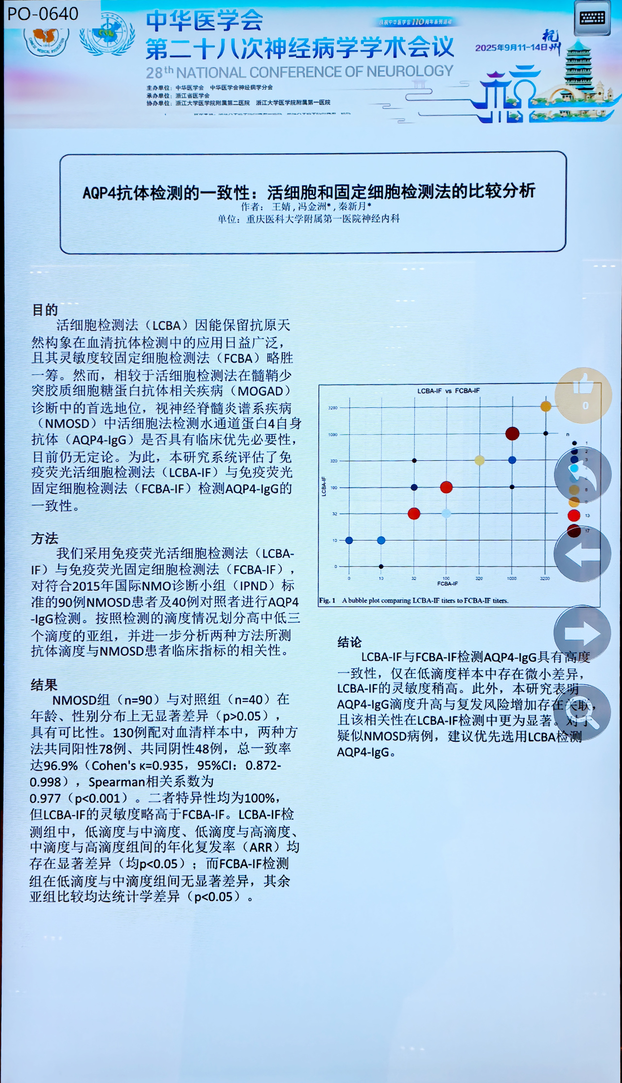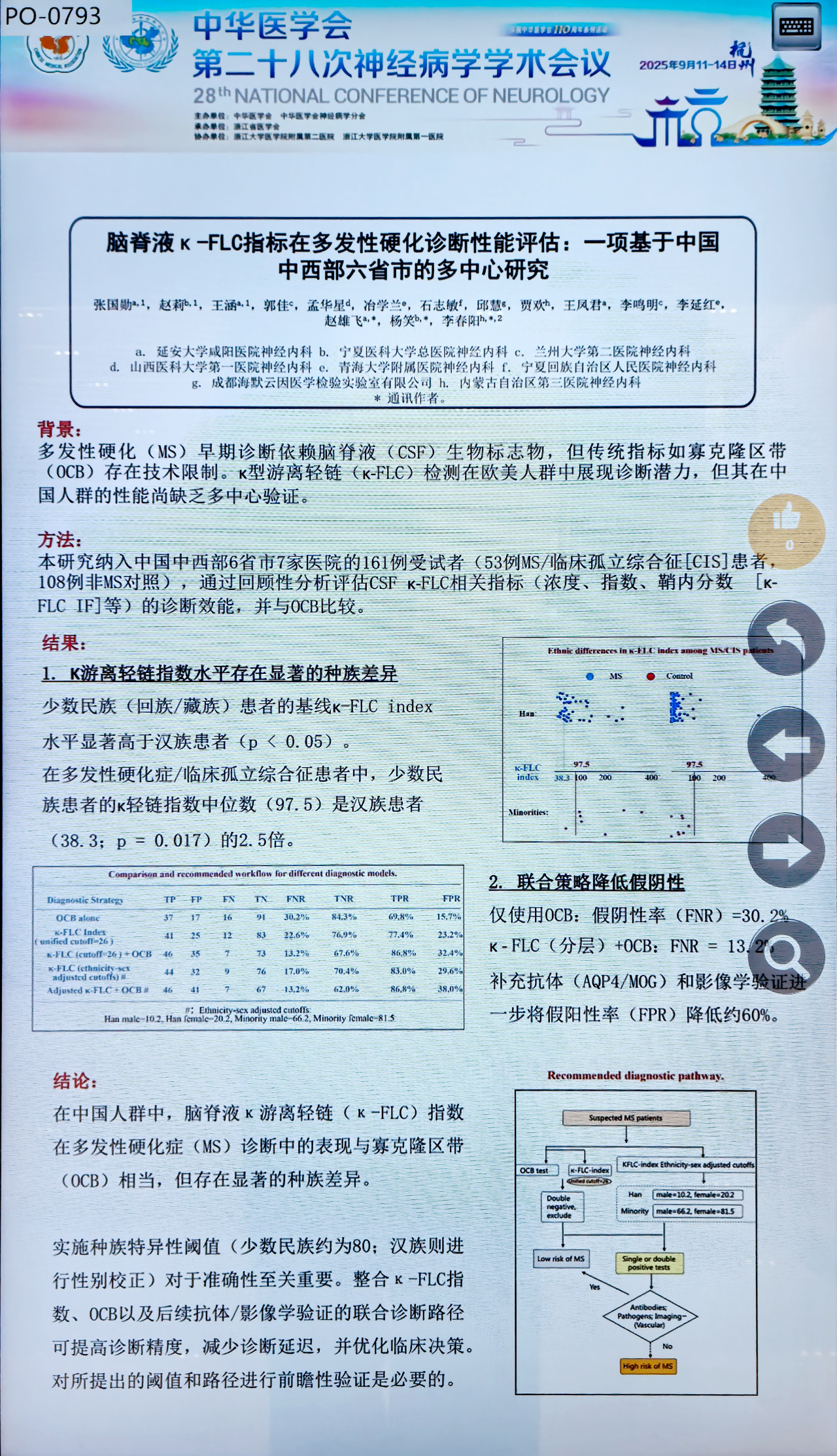 精准检测,赋能临床:中华医学会神经病学年会两项研究成果引关注!![]() 近日,在中华医学会第二十八次神经病学学术会议上,两项聚焦神经疾病诊断检测的重要研究成果引起了学界广泛关注。其中一项为“脑脊液κ游离轻链(κ-FLC)指标在多发性硬化诊断性能评估:一项基于中国中西部六省市的多中心研究”,另一项为“AQP4抗体检测的一致性:活细胞与固定细胞检测法的比较分析”。这两项研究均由海默医学实验室提供专业检测技术支持! ![]() ![]() 1 脑脊液κ-FLC指标检测: MS诊断的“精准利器” 多发性硬化(MS)是一种中枢神经系统的慢性炎性脱髓鞘疾病,早期准确诊断对治疗和预后至关重要。由延安大学咸阳医院、宁夏医科大学总医院、兰州大学第二医院等七家医院自2024年12月起联合开展的多中心研究中首次系统评估了脑脊液κ-FLC指标在中国中西部人群中的诊断性能。这项研究纳入了中国中西部6省市161例受试者,通过回顾性分析评估了脑脊液κ-FLC相关指标(浓度、指数、鞘内分数等)的诊断效能,并与传统寡克隆区带(OCB)检测进行了比较。 ![]() 不同诊断模型的比较 2 技术支撑: 海默医学实验室提供关键检测保障 ![]() 海默医学实验室作为该研究的重要参与单位,为这项多中心研究提供了可靠的检测技术支持。实验室凭借专业的技术平台和严格的质量控制,确保了κ-FLC检测结果的准确性和可靠性,为研究的顺利开展提供了坚实保障。 研究数据显示,单独使用OCB检测的假阴性率高达30.2%,而采用κ-FLC指数(分层)+OCB的联合策略可将假阴性率降低至13.2%。再补充抗体(AQP4/MOG)和影像学验证后,可进一步将假阳性率降低约60%。 这种联合诊断路径能够显著提高诊断精度,减少诊断延迟,优化临床决策,为MS患者带来更及时的诊疗机会。 3 同步创新: AQP4抗体检测为NMOSD诊断保驾护航 同期会议上,重庆医科大学附属第一医院神经内科发表的题目为《AQP4抗体检测的一致性:活细胞和固定细胞检测法的比较分析》的研究,展示了抗体检测技术的重要进展。 在视神经脊髓炎谱系疾病(NMOSD)等相关疾病诊断中,水通道蛋白4(AQP4)抗体检测十分关键。活细胞检测法(LCBA)因能保留抗原天然构象,在抗体检测中的应用日益广泛,且其灵敏度相较于固定细胞检测法(CBA)略胜一筹。 海默医学实验室为该研究提供了先进的活细胞检测法(LCBA-IF)与固定细胞检测法(FCBA-IF)检测服务。研究结果表明,两种检测方法在AQP4-IgG检测方面具有高度一致性,即使在低滴度样本中也能保持良好表现,且在LCBA检测中相关性更为显著。这一发现为临床诊断提供了重要指导:对于疑似NMOSD病例,优先选用LCBA检测AQP4-IgG具有重要价值。 ![]() LCBA-IF滴度与FCBA-IF滴度比较的气泡图 4 展望未来: 精准医疗,检测先行 两项重要研究共同印证了一个核心结论:精准的诊断必须建立在精准的检测技术基础之上。 海默医学实验室始终秉持专业、精准、高效的理念,不断引进和优化前沿检测技术。无论是在MS诊断中具有革新意义的脑脊液κ-FLC指标检测,还是为NMOSD等相关疾病诊断提供关键依据的AQP4抗体检测,都展现出实验室强大的技术实力与专业能力。 我们致力于为神经疾病的精准诊断提供可靠检测服务,成为临床医生的得力助手,共同为患者的健康保驾护航。 |