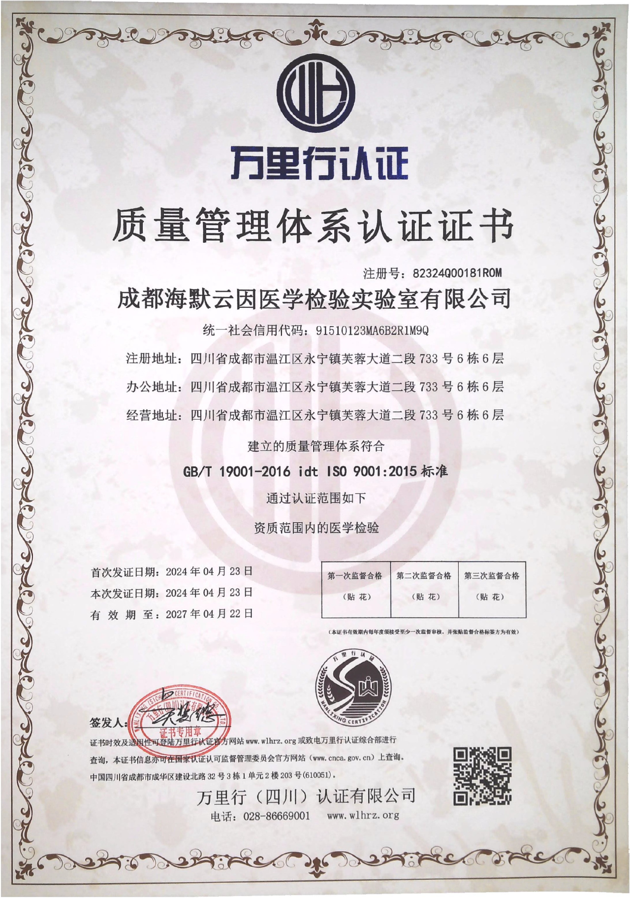 品质引领未来 ——海默医学顺利通过ISO9001质量管理体系认证heimer 2024年4月23日,成都海默云因医学检验实验室有限公司(以下简称“海默医学”)顺利通过ISO9001质量管理体系认证,并正式获得质量管理体系认证证书。这一重要里程碑标志着海默医学在质量管理、流程优化以及顾客满意度提升方面取得了显著成效。 ISO9001是国际标准化组织制定的一项全球公认的质量管理体系标准,旨在通过规范化的质量管理体系,强调管理、注重过程控制和持续改进,以不断提升组织的服务质量和运营效率,确保产品和服务的质量满足客户要求。海默医学自启动ISO9001认证工作以来,始终秉持“质量为先”“全心全意为患者服务”的理念,全面推进质量管理体系的建设和实施。始终坚持以顾客为中心,注重过程管理,致力于提供高质量的第三方医学检验服务。 ![]() heimer ![]() 认证证书 ![]() 在认证过程中,海默医学全面梳理了业务流程,明确了各部门和岗位的职责,建立了完善的质量管理体系文件,并通过内部审核、管理评审等方式,不断发现和改进存在的问题。我们注重员工培训和意识提升,确保每位员工都能理解并践行质量管理理念,共同推动检验业务质量的持续提升。 经过严格的审核和评估,海默医学的质量管理体系得到了认证机构的认可,顺利获得了ISO9001质量管理体系认证证书。这一成果不仅体现了我们在医学检验服务质量管理方面的努力和成果,也为我们赢得了更多客户的信任和好评。 未来,海默医学将继续秉持“质量为先”“全心全意为患者服务”的服务理念,以ISO9001质量管理体系为基石,不断提升服务质量和运营效率,为顾客提供更加优质、高效的检验服务。我们将恪守“勇于创新、团结协作、立即行动、追求卓越”的价值观,以建成全国性的神经类疾病诊断服务平台为目标,坚持用科学的方法创新技术,为疑难疾病畅通诊断之路,为健康中国持续贡献力量! |